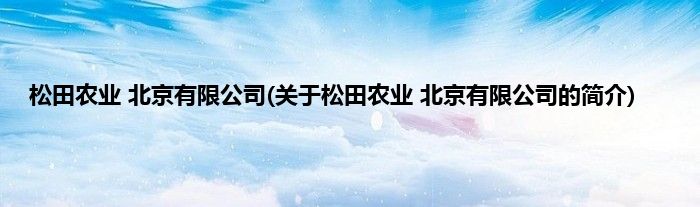 本文关于松田农业 北京有限公司的简介就讲解完毕,希望对大家有所帮助。