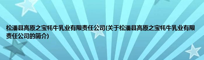 本文关于松潘县高原之宝牦牛乳业有限责任公司的简介就讲解完毕,希望对大家有所帮助。