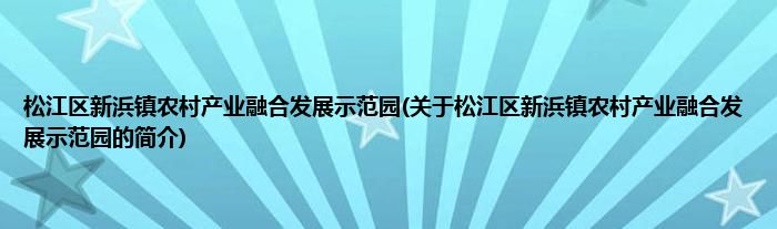 本文关于松江区新浜镇农村产业融合发展示范园的简介就讲解完毕,希望对大家有所帮助。
