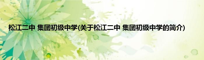 大家好,松江二中 集团初级中学,关于松江二中 集团初级中学的简介很多人还不知道,现在让我们一起来看看吧!
