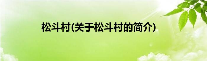 本文关于松斗村的简介就讲解完毕,希望对大家有所帮助。