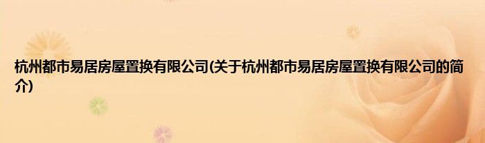 本文关于杭州都市易居房屋置换有限公司的简介就讲解完毕,希望对大家有所帮助。