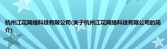 本文关于杭州江花网络科技有限公司的简介就讲解完毕,希望对大家有所帮助。