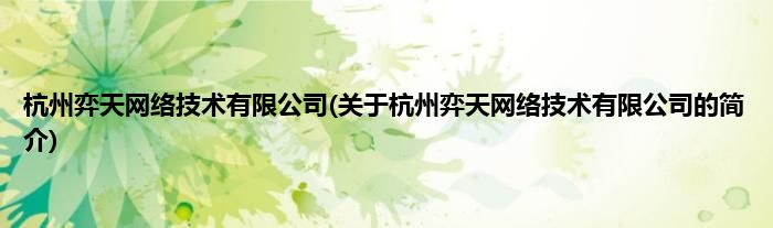 本文关于杭州弈天网络技术有限公司的简介就讲解完毕,希望对大家有所帮助。