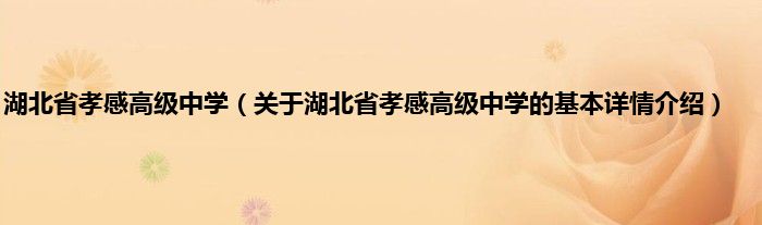 本文关于湖北省孝感高级中学的基本详情介绍就讲解完毕,希望对大家有所帮助。