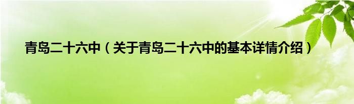 本文关于青岛二十六中的基本详情介绍就讲解完毕,希望对大家有所帮助。