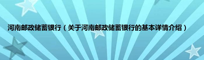 本文关于河南邮政储蓄银行的基本详情介绍就讲解完毕,希望对大家有所帮助。