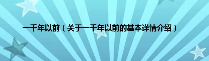 本文关于一千年以前的基本详情介绍就讲解完毕,希望对大家有所帮助。