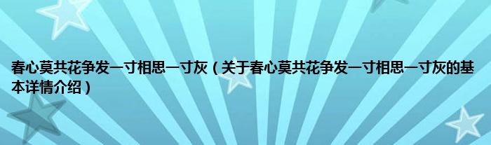 本文关于春心莫共花争发一寸相思一寸灰的基本详情介绍就讲解完毕,希望对大家有所帮助。