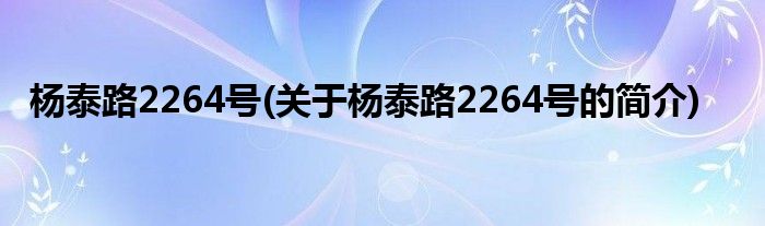 大家好,杨泰路2264号,关于杨泰路2264号的简介很多人还不知道,现在让我们一起来看看吧!