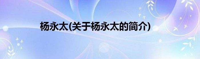 大家好,杨永太,关于杨永太的简介很多人还不知道,现在让我们一起来看看吧!