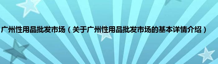 本文关于广州性用品批发市场的基本详情介绍就讲解完毕,希望对大家有所帮助。