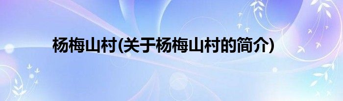 本文关于杨梅山村的简介就讲解完毕,希望对大家有所帮助。