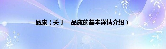 本文关于一品康的基本详情介绍就讲解完毕,希望对大家有所帮助。