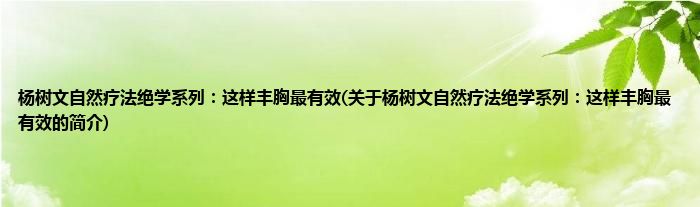 本文关于杨树文自然疗法绝学系列:这样丰胸最有效的简介就讲解完毕,希望对大家有所帮助。