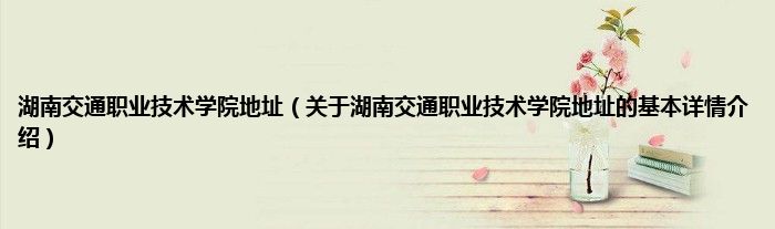 本文关于湖南交通职业技术学院地址的基本详情介绍就讲解完毕,希望对大家有所帮助。