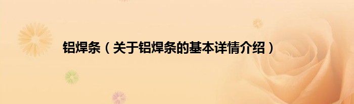 本文关于铝焊条的基本详情介绍就讲解完毕,希望对大家有所帮助。