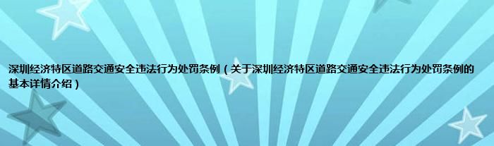 本文关于深圳经济特区道路交通安全违法行为处罚条例的基本详情介绍就讲解完毕,希望对大家有所帮助。