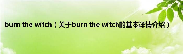 本文关于burn the witch的基本详情介绍就讲解完毕,希望对大家有所帮助。