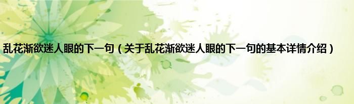 本文关于乱花渐欲迷人眼的下一句的基本详情介绍就讲解完毕,希望对大家有所帮助。