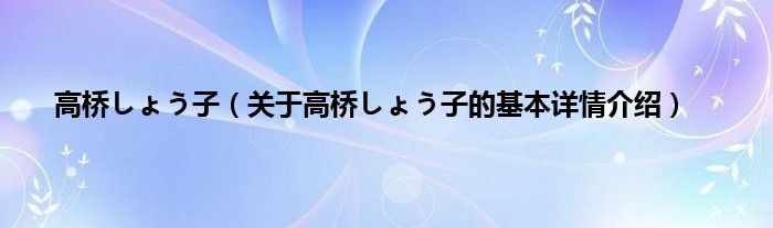 高桥しょう子(关于高桥しょう子的基本详情介绍)