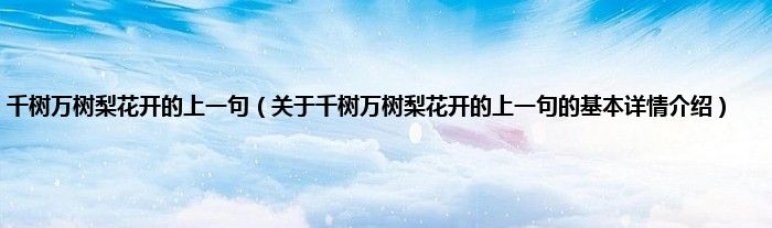 本文关于千树万树梨花开的上一句的基本详情介绍就讲解完毕,希望对大家有所帮助。