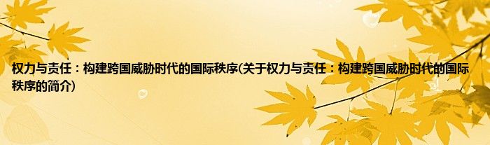 本文关于权力与责任:构建跨国威胁时代的国际秩序的简介就讲解完毕,希望对大家有所帮助。