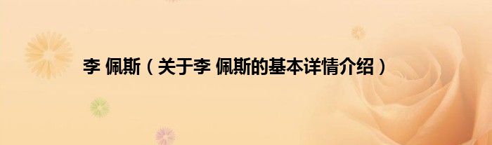 本文关于李 佩斯的基本详情介绍就讲解完毕,希望对大家有所帮助。