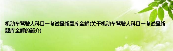 本文关于机动车驾驶人科目一考试最新题库全解的简介就讲解完毕,希望对大家有所帮助。