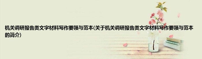 本文关于机关调研报告类文字材料写作要领与范本的简介就讲解完毕,希望对大家有所帮助。