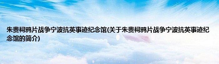 本文关于朱贵祠鸦片战争宁波抗英事迹纪念馆的简介就讲解完毕,希望对大家有所帮助。