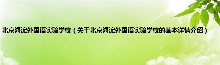 本文关于北京海淀外国语实验学校的基本详情介绍就讲解完毕,希望对大家有所帮助。