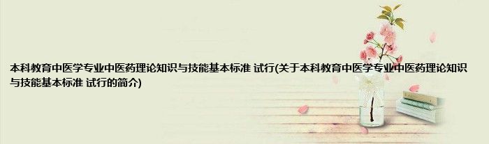 1、 本科教育中医学专业中医药理论知识与技能基本标准(试行)是由教育部办公厅、国家中医药管理局办公室印发的文件,旨在加强中医药教育宏观管理,规范高等中医药教育专业设置,加强临床教学基地建设和中医学专业人才培养工作,不断提高中医药教育质量而制定本标准,作为教育部、国家中医药管理局管理中医药类专业设置、临床教学基地建设等工作的主要依据之一。
