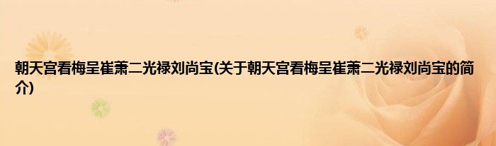 本文关于朝天宫看梅呈崔萧二光禄刘尚宝的简介就讲解完毕,希望对大家有所帮助。