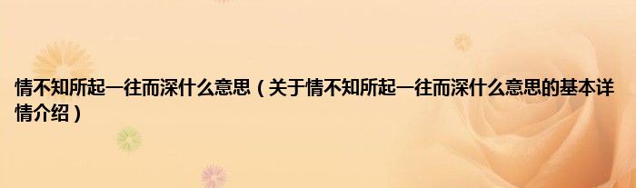 本文关于情不知所起一往而深什么意思的基本详情介绍就讲解完毕,希望对大家有所帮助。
