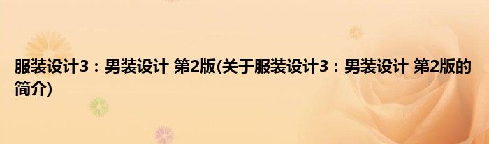 1、 《服装设计3:男装设计(第2版)》是2015年东华大学出版社出版的图书,作者是许才国,刘晓刚。
