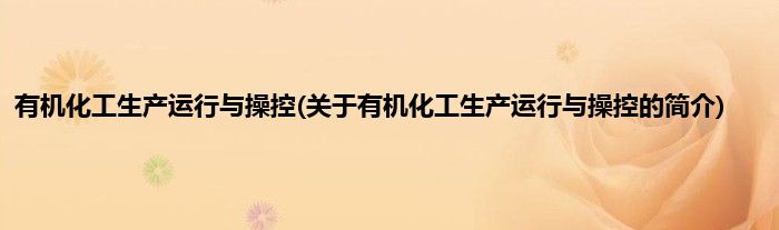 本文关于有机化工生产运行与操控的简介就讲解完毕,希望对大家有所帮助。