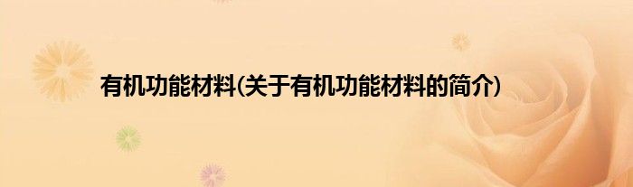 大家好,有机功能材料,关于有机功能材料的简介很多人还不知道,现在让我们一起来看看吧!