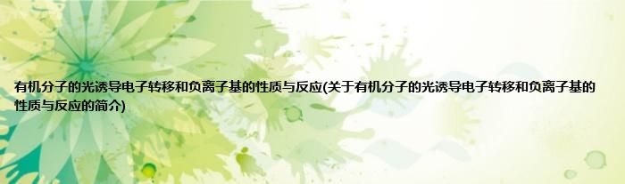 本文关于有机分子的光诱导电子转移和负离子基的性质与反应的简介就讲解完毕,希望对大家有所帮助。