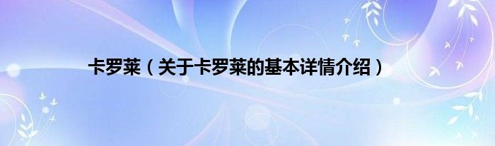 本文关于卡罗莱的基本详情介绍就讲解完毕,希望对大家有所帮助。
