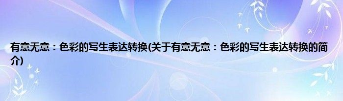 本文关于有意无意:色彩的写生表达转换的简介就讲解完毕,希望对大家有所帮助。