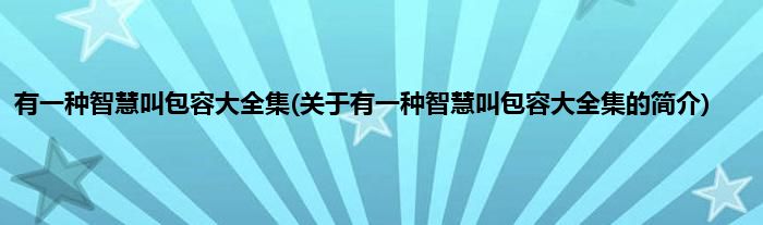 大家好,有一种智慧叫包容大全集,关于有一种智慧叫包容大全集的简介很多人还不知道,现在让我们一起来看看吧!