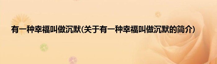 大家好,有一种幸福叫做沉默,关于有一种幸福叫做沉默的简介很多人还不知道,现在让我们一起来看看吧!