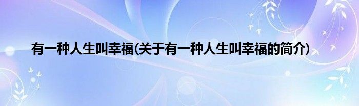 大家好,有一种人生叫幸福,关于有一种人生叫幸福的简介很多人还不知道,现在让我们一起来看看吧!