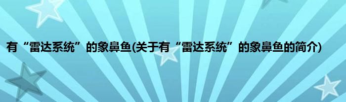 大家好,有“雷达系统”的象鼻鱼,关于有“雷达系统”的象鼻鱼的简介很多人还不知道,现在让我们一起来看看吧!