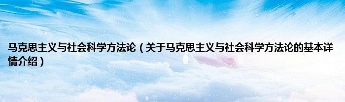 马克思主义与社会科学方法论(关于马克思主义与社会科学方法论的基本详情介绍)