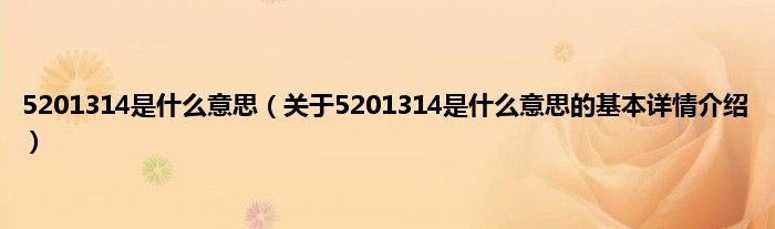 3、因为在网络上为了方便,所以5201314也就成了我爱你一生一世!现在已经运用到我们的生活当中。