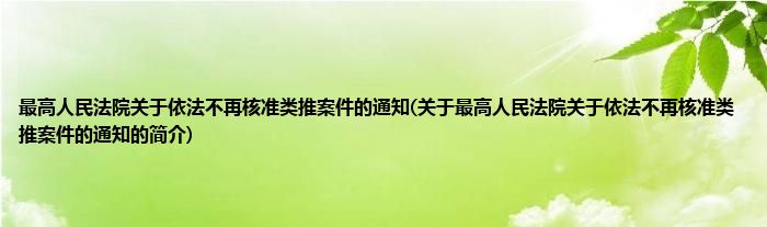 大家好,最高人民法院关于依法不再核准类推案件的通知,关于最高人民法院关于依法不再核准类推案件的通知的简介很多人还不知道,现在让我们一起来看看吧!