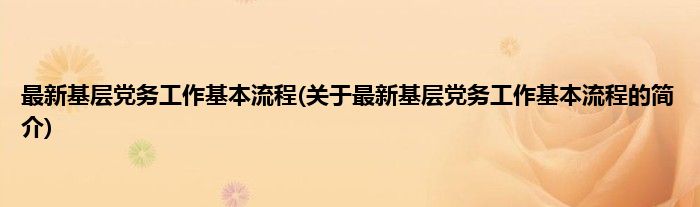 本文关于最新基层党务工作基本流程的简介就讲解完毕,希望对大家有所帮助。