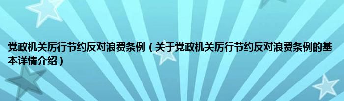 本文关于党政机关厉行节约反对浪费条例的基本详情介绍就讲解完毕,希望对大家有所帮助。